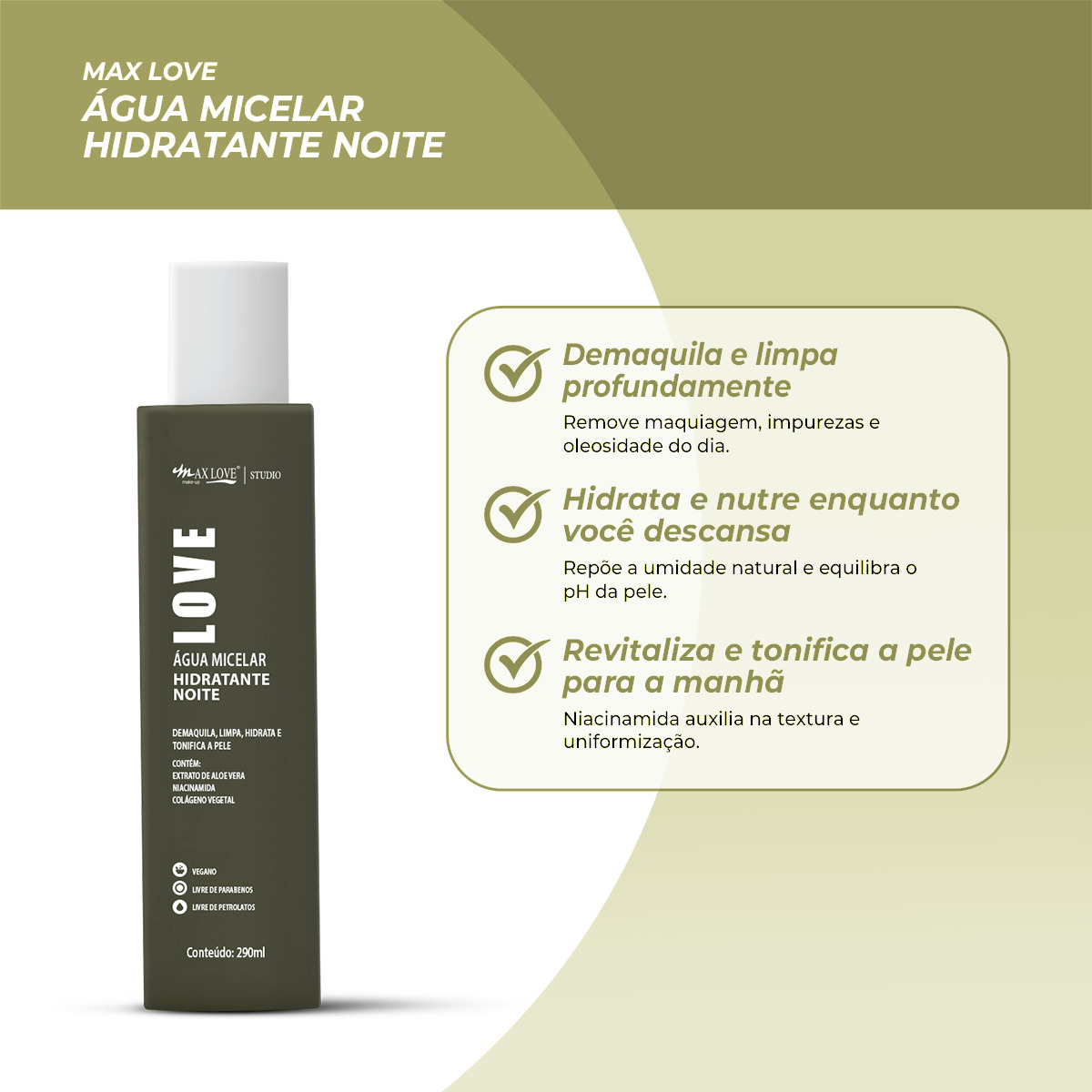 ÁGUA MICELAR HIDRATANTE NOITE MAX LOVE – 300ML