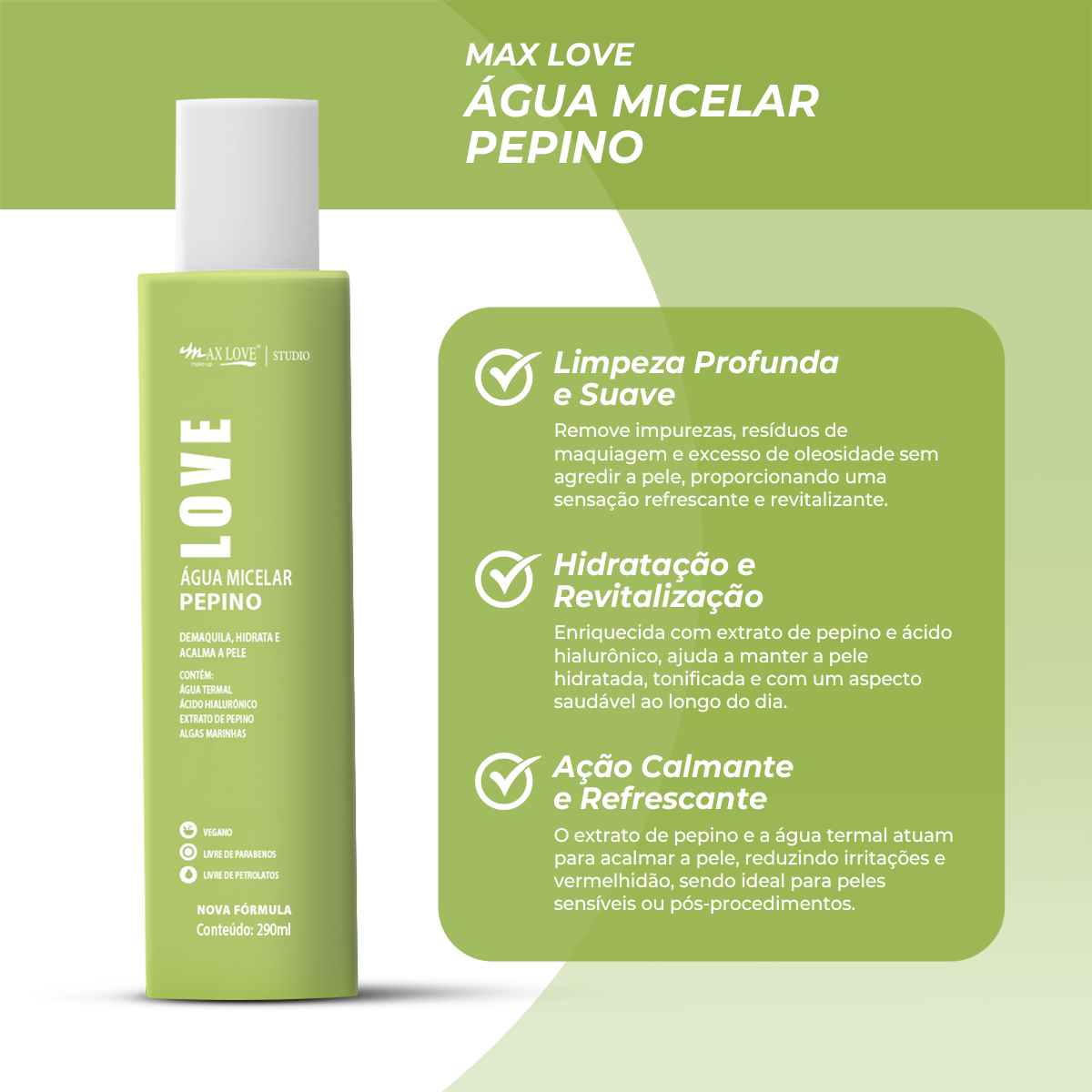 Água Micelar de Pepino – MAX LOVE: Refresque e Limpe Sua Pele de Forma Suave e Eficaz!