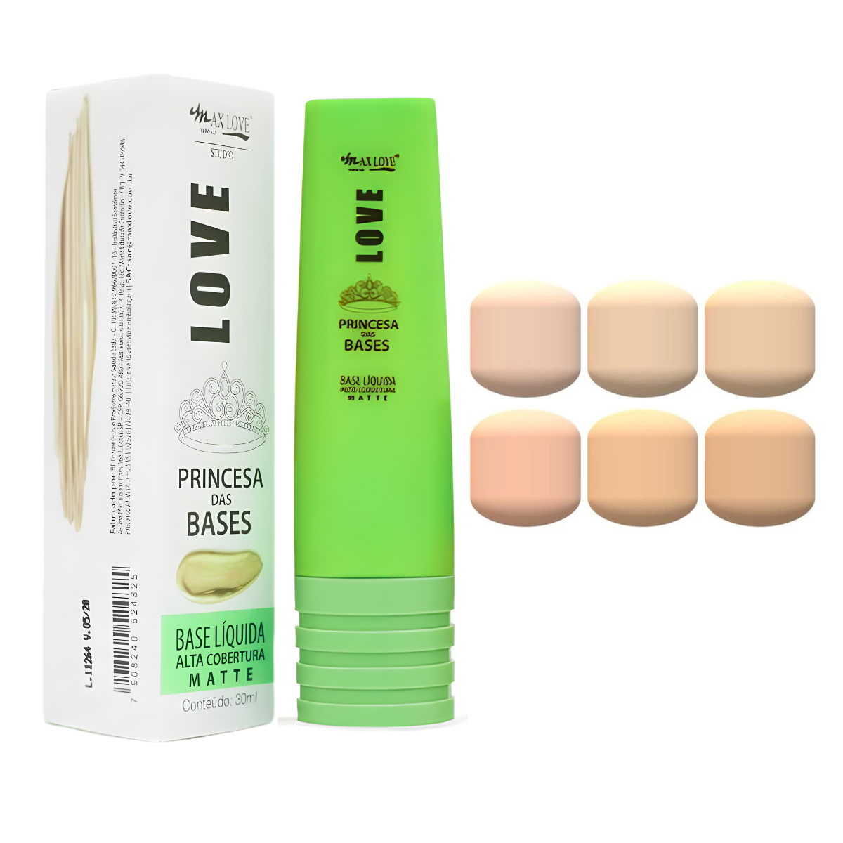 Sua busca pela base perfeita acabou! A Princesa das Bases da Max Love é o segredo para uma maquiagem impecável com acabamento matte e toque seco, ideal para a rotina diária ou para aquela super produção.