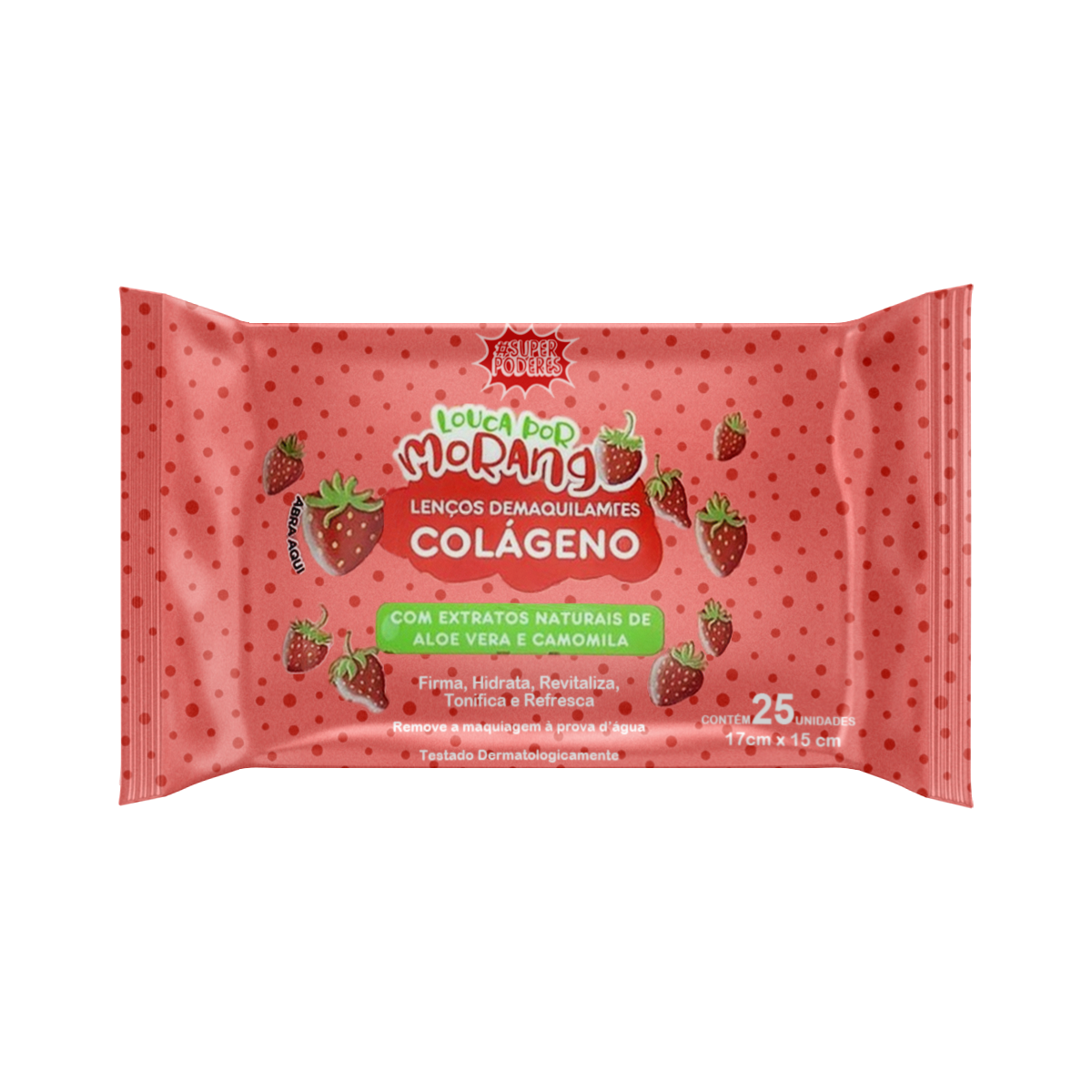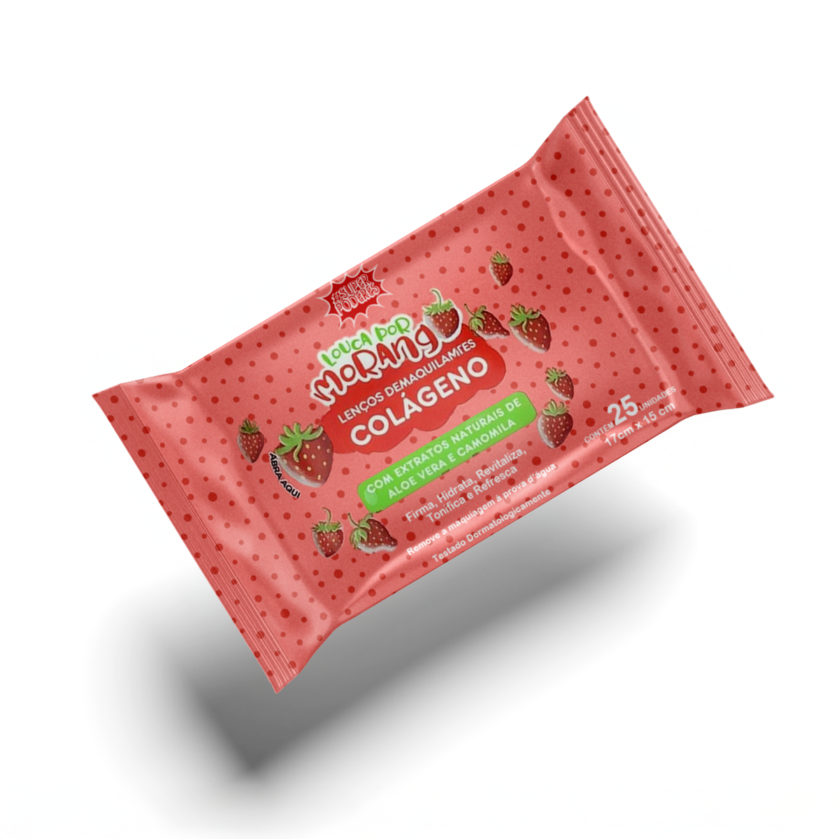 Lenços Demaquilante Colageno Louca por Morango – Super Poderes