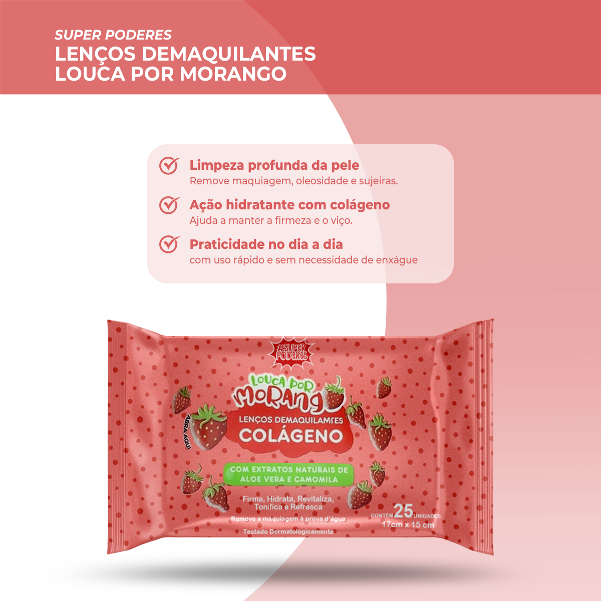 Lenço Demaquilante de Colágeno com Cheirinho de Morango | Super Poderes